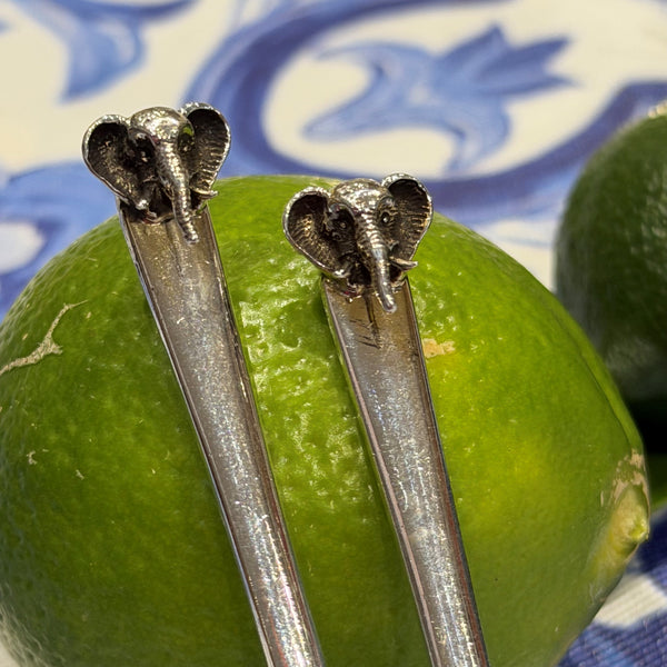 Pair of Elephant Teaspoons, 1967 — sterling charm with trunkloads of style, made for tea for two. Description: Metal: 925 Sterling Silver Size: 2cm wide / 10cm long Hallmarks: Birmingham...